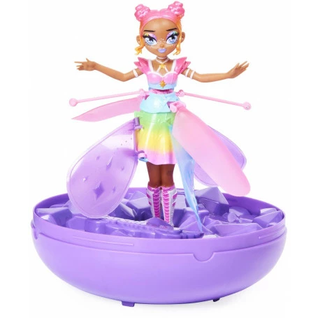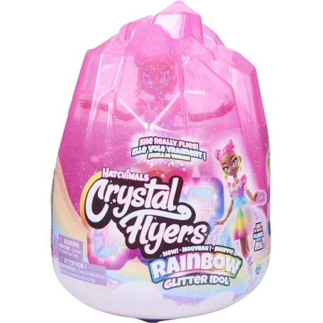 Light up the sky with the Hatchimals Pixies Crystal Flyers Rainbow Glitter Idol! Crystal Flyers are the first-ever Hatchimals Pixies that can really fly with your help! Inside of the gorgeous crystal egg, you’ll find a beautiful Crystal Flyer Pixie with glittery wings, a rainbow dress and matching colorful makeup. Remove your Rainbow Glitter Idol Pixie from her egg and charge her with the included USB cable. When she’s fully charged, she’s ready to air dance and fill the sky with a burst of color! Switch your Pixie fairy doll on and the LED lights on her dress will start to pulse and her glittery wings will begin to flutter and spin. Let her go and she’ll magically fly – use your Pixie Power to guide her! Featuring a built-in sensor, your Rainbow Glitter Idol Pixie doll can sense where your hands are as you help her to fly indoors. Lift your hands high and she’ll fly high, move them low and she’ll fly low, dancing through the air! As she hovers above your hands, her dress shimmers and her glittery wings sparkle as she flies! She’s so pretty! With enough practice, you and your Pixie are on your way to becoming the best air dancers in the Hatchmosphere! Mid-flight, you can safely grab your Pixie’s legs to reposition her. Made of durable and safety tested materials, if you accidentally touch her wings while she’s flying, it’s completely safe – with an auto-stop feature, she’ll stop flying right away. When she’s not flying, display your Pixie inside her sparkly clear crystal egg. Crystal Flyers and Hatchimals surprise toys for girls are perfect for kids who enjoy cute collectibles, action figures, dolls, and small toys. Crystal Flyers make great birthday gifts, Christmas gifts or gifts for any occasion for kids aged 6 and up. Bring your very own Hatchimals Pixie to life with the Hatchimals Pixies Crystal Flyers Rainbow Glitter Idol! The magic is in your hands!
